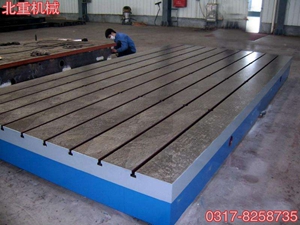 3、鉚焊平臺(鉚焊平板)的材質為高強度鑄鐵HT150-300,任務面硬度為HB170-350,經由兩次人工處置(人工退火六百度-七百度和天然時效三年)。對鉚焊平臺進行熱處置的目標是削減逐步中的應力,消弭平板的局部白口組織,進步平板任務外表的硬度和耐磨性,使精度不變,耐磨功能好。